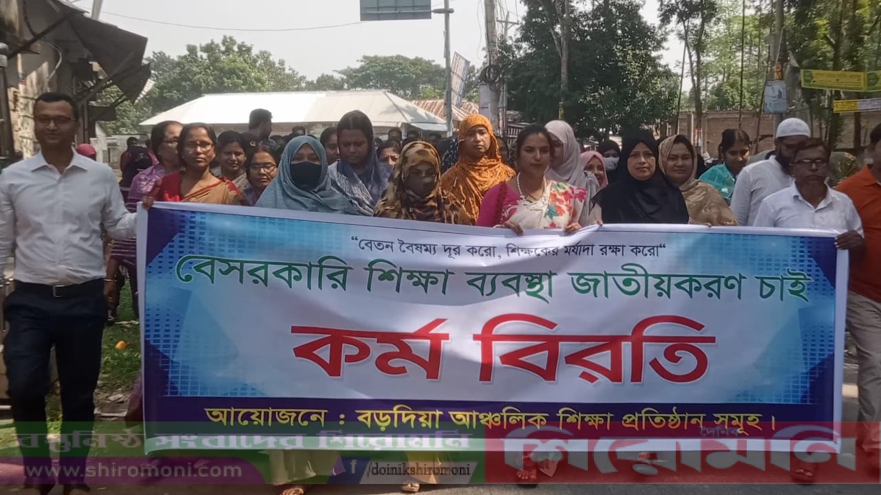 শিক্ষা প্রতিষ্ঠানে কর্মরত শিক্ষক ও কর্মচারীরা বিক্ষোভ করেছে। ১৬ অক্টোবর (বৃহস্পতিবার) সকাল ১১ টায় বড়দিয়া মুন্সী মানিক মিয়া ডিগ্রি কলেজ গেটে বড়দিয়া অঞ্চলের সকল মাধমিক ও সমমানের শিক্ষা প্রতিষ্ঠানের শিক্ষক ও কর্মচারীরা এ বিক্ষোভ করেন। বিক্ষোভ মিছিলটি বড়দিয়া বাজার প্রদক্ষিন করে কলেজ গেটে এসে শেষ হয়ে।
