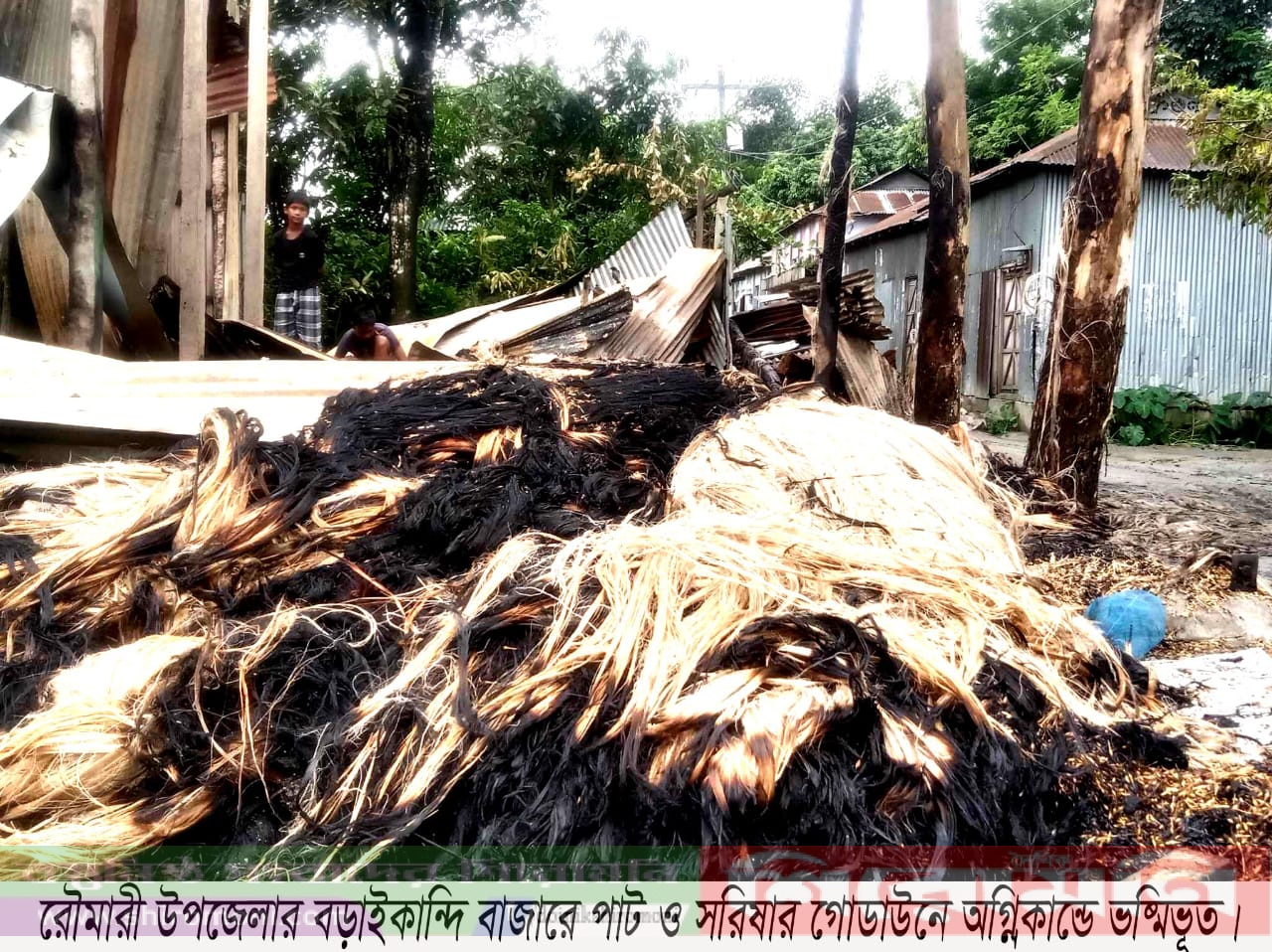 স্থানীয় সূত্রে জানা যায়, পাট ও সরিষার গোডাউন ঘর থেকে হঠাৎ করে আগুনের লেলিহান ও ধোয়া দেখতে পায় পথচারিরা। পরে স্থানীয়রা বিভিন্ন ভাবে আগুন নিভানোর চেষ্টা করেন ও ফায়ার সার্ভিস স্টেশনে খবর দিলে তারা ঘটনাস্থলে গিয়ে দ্রুত আগুন নিয়ন্ত্রণে আনে। এতে গোডাউনের মালিক কেরামত আলী ও মজনু মিয়ার প্রায় ২’শ মন পাট, সাড়ে ৩’শ মন সরিষা ও বিভিন্ন মালামালসহ প্রায় ২৫ লক্ষাধীক টাকা ক্ষতি সাধিত হয়েছে। ধারনা করা হচ্ছে বৈদ্যুতিক শর্ট সার্কিট থেকে আগুনের সূত্রপাত ঘটে।
