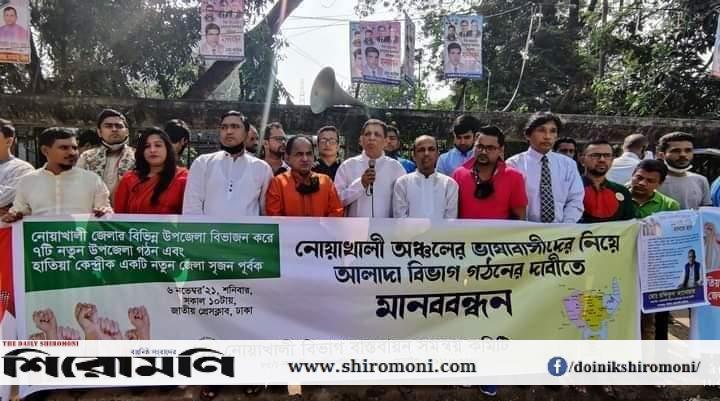 জাতীয় প্রেস ক্লাবের সামনে নোয়াখালী বিভাগ চাই’ দাবিতে মানববন্ধন