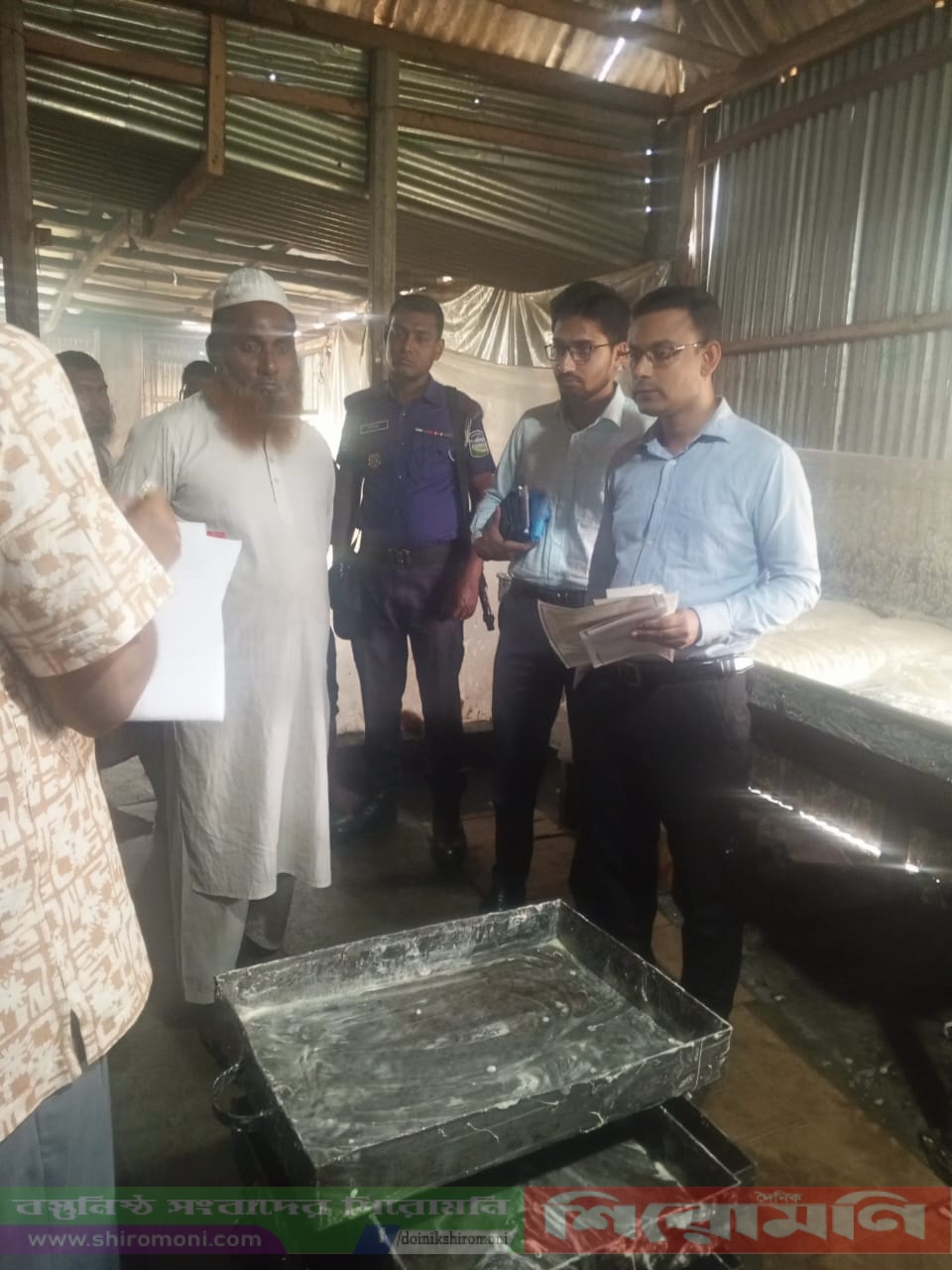 বৃহস্পতিবার (২০ মার্চ) বিকেলে ৪:৩০ ঘটিকায় , নেত্রকোণা জেলা প্রশাসক কার্যালয়ের সহকারী কমিশনার ও নির্বাহী ম্যাজিস্ট্রেট জনাব অভিজিৎ চক্রবর্তী,ও জেলা নিরাপদ খাদ্য কর্মকর্তা হাবিবুর রহমান এই অভিযান পরিচালনা করেন।