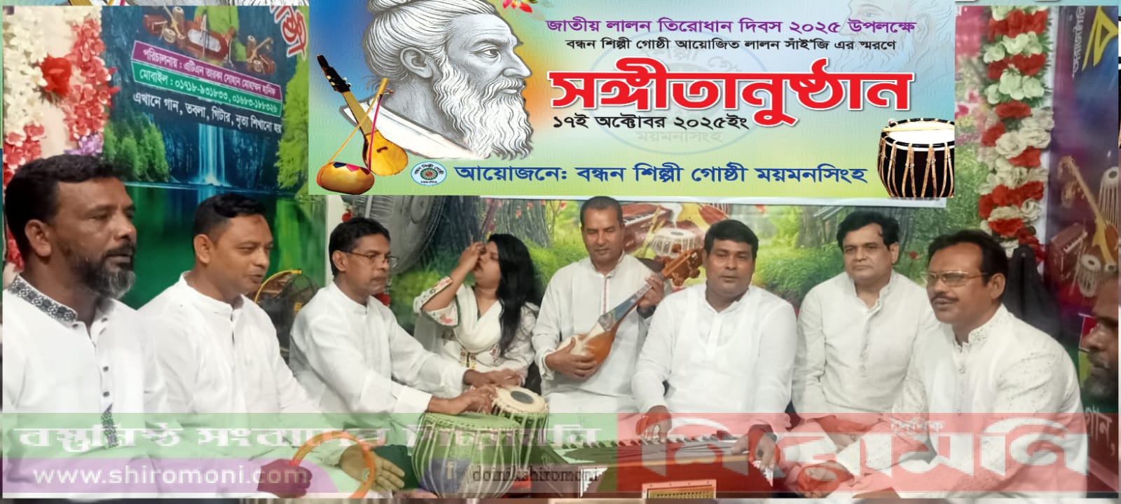 মোঃ রেজাউল ইসলাম ময়মনসিংহ:ফকির লালন সাঁইজির ১৩৫তম তিরোধান দিবস ২০২৫ উপলক্ষে ময়মনসিংহে বন্ধন শিল্পীগোষ্ঠী গত ১৭ অক্টোবর শুক্রবার সন্ধ্যায় এক মনোরম সংগীতা অনুষ্ঠানের মধ্য দিয়ে দিবসটি উদযাপন করেন।