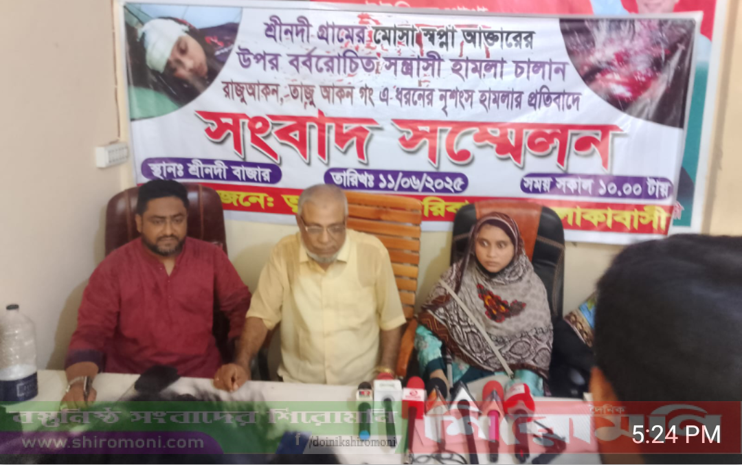 জেলা প্রতিনিধি, মাদারীপুর:মাদারীপুরের রাজৈর পৌরসভার ৩নং ওয়ার্ড স্বরমঙ্গল এলাকায় ক্রয়কৃত সম্পত্তিতে ঘর তুলতে গিয়ে হামলার শিকার হয়েছে স্বপ্না আক্তার নামে এক বিধবা নারী। এ ঘটনায় বুধবার (১১ জুন) দুপুরে সদর উপজেলার শিড়খাড়া ইউনিয়নের শ্রীনদী বাজারে দোষীদের দ্রুত গ্রেফতার ও বিচারের দাবিতে সংবাদ সম্মেলন করেছেন ভুক্তভোগী পরিবার। এসময় হামলাকারীদের দ্রুত বিচার দাবি করেন তারা।